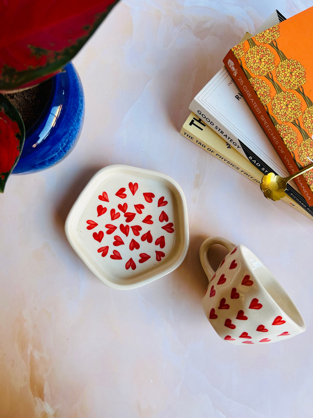 Fall in love with every sip! The Beating Heart Mug brings a cheerful burst of color to your morning routine. Designed with a vibrant heart motif, this delightful mug is perfect for those who enjoy sipping their favorite beverages in style. Paired with a matching saucer, it adds an extra touch of charm to your coffee or tea time—making it as gift-worthy as it is practical.