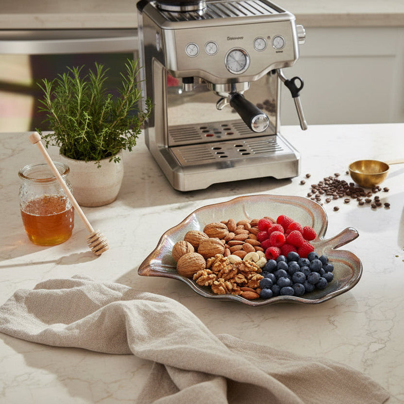 Bring the calm of nature to your table with our Botanica Serving Platter, thoughtfully crafted to blend organic beauty with everyday elegance. Inspired by forest foliage, the rich green glaze paired with earthy brown tones creates a warm, grounded aesthetic that elevates both casual meals and festive spreads.