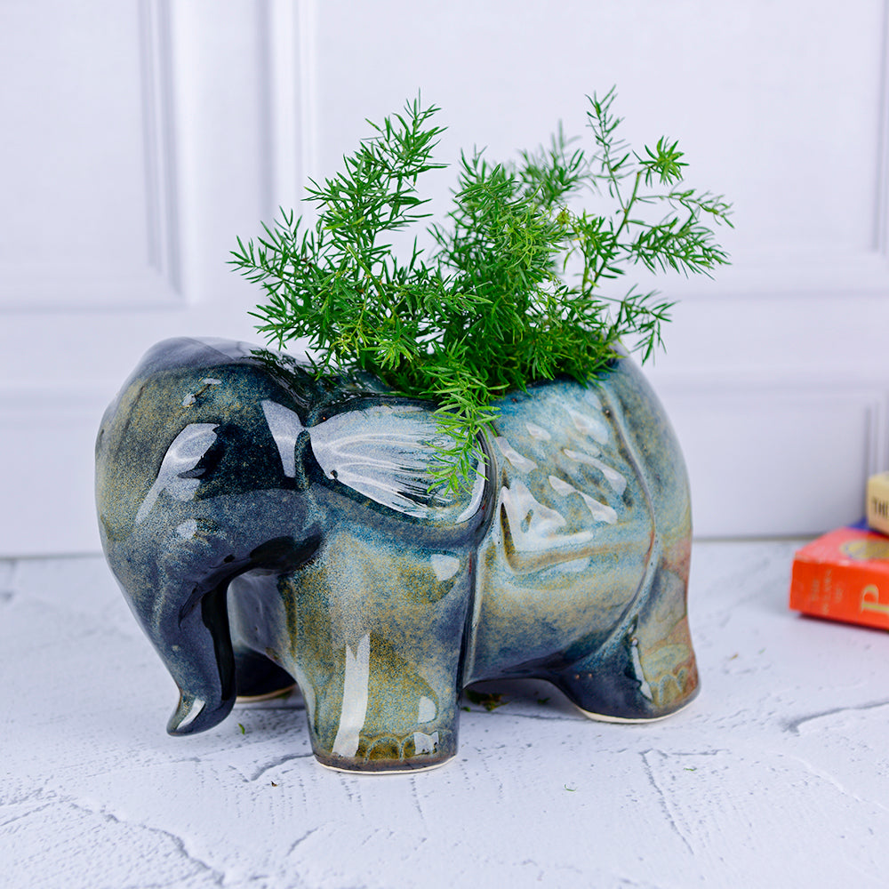 Bring a touch of charm and tranquility to your home or garden with the Blue Elephant Planter. This beautifully crafted ceramic planter features a playful yet elegant elephant design in a soothing blue color, making it a standout piece for any space. Whether placed on a balcony, windowsill, or as part of an indoor garden, this planter adds character and a sense of calm, perfect for nature lovers and those who appreciate unique decor.