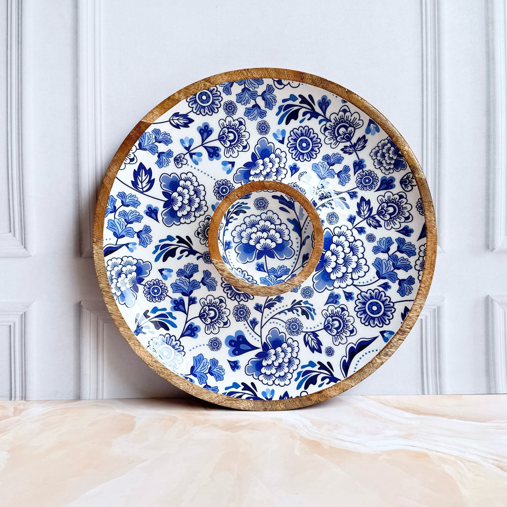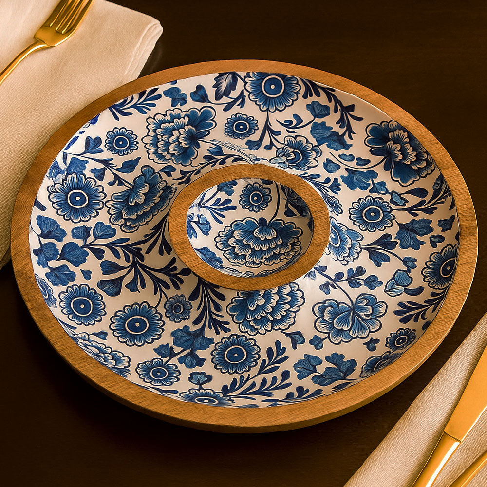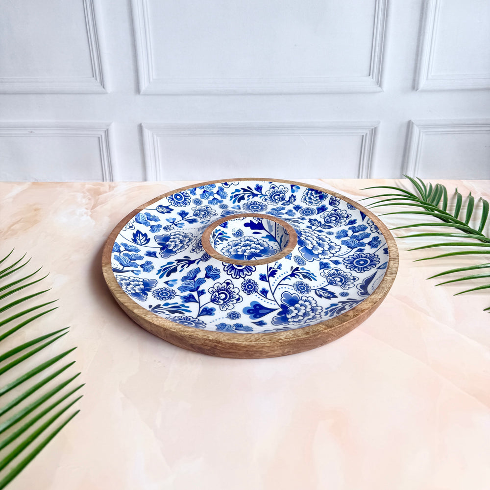 Elevate your hosting game with the Festive Floré Chip n Dip Platter, handcrafted from premium mango wood and finished with a food-safe lacquer for lasting beauty and durability. This intricately designed 2-piece set features a central dip bowl, making it perfect for serving chips, crackers, fruits, or mithai with ease and style.