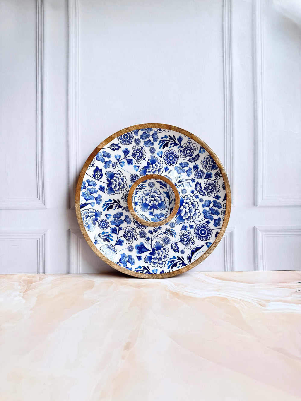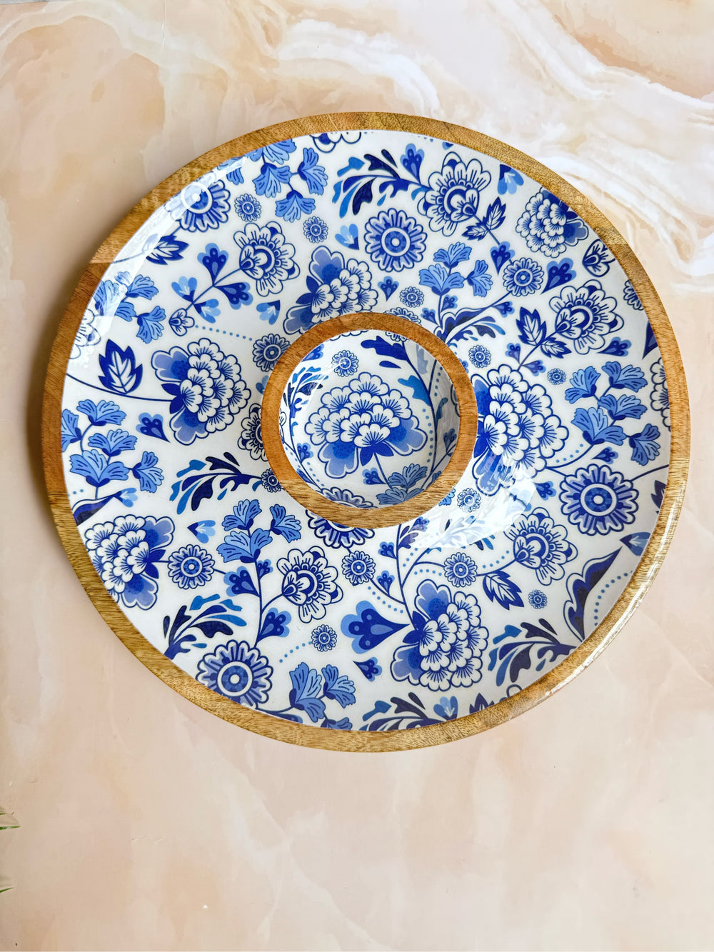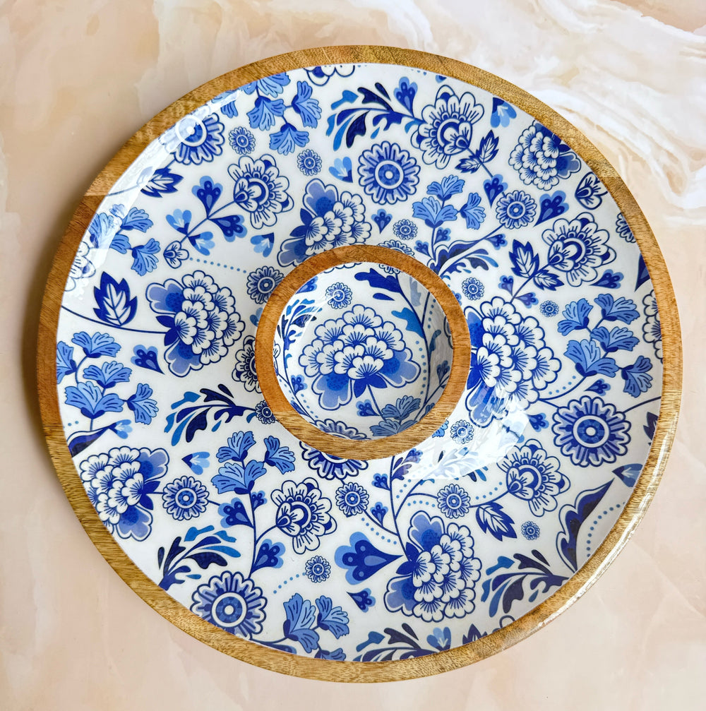Elevate your hosting game with the Festive Floré Chip n Dip Platter, handcrafted from premium mango wood and finished with a food-safe lacquer for lasting beauty and durability. This intricately designed 2-piece set features a central dip bowl, making it perfect for serving chips, crackers, fruits, or mithai with ease and style.