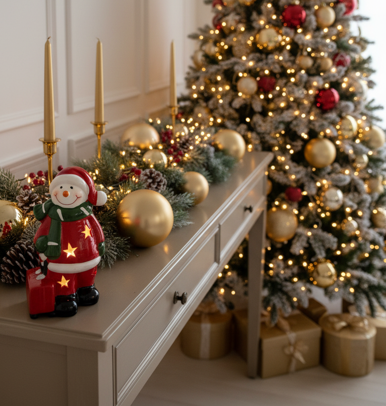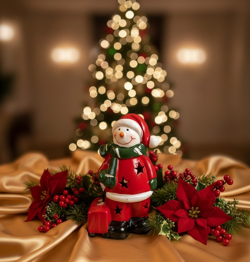 This season, Frosty is taking a well-deserved adventure! Our Snowman with Travel Suitcase Ceramic Sculpture beautifully captures the playful spirit of the holidays with Frosty’s dressed in his festive best, ready for his next journey with a vintage-style suitcase in hand.