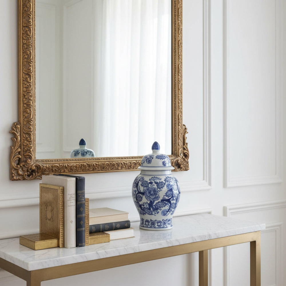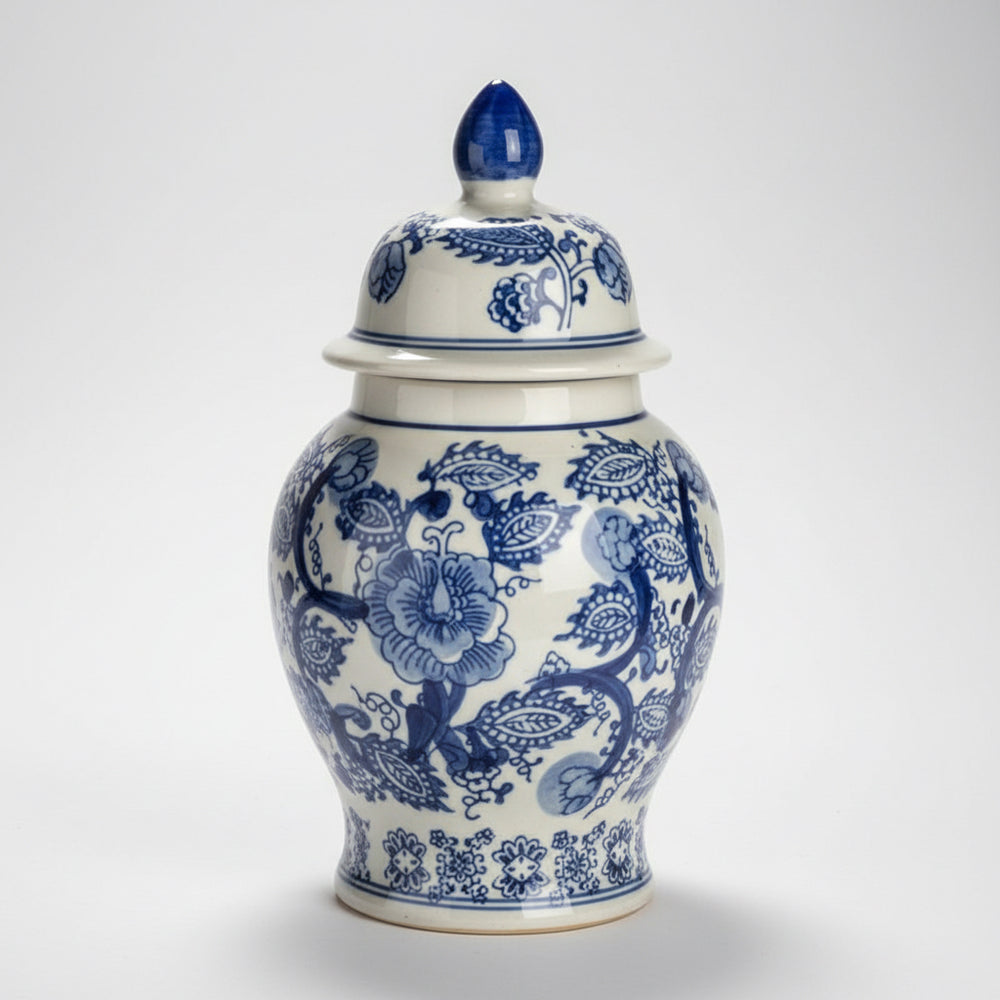 A statement of heritage and quiet grandeur, the Imperial Blue Dynasty Urn is inspired by the timeless artistry of traditional blue pottery. Cloaked in deep cobalt tones and intricate hand-detailed motifs, this urn brings a regal presence to consoles, entryways, and styled corners.