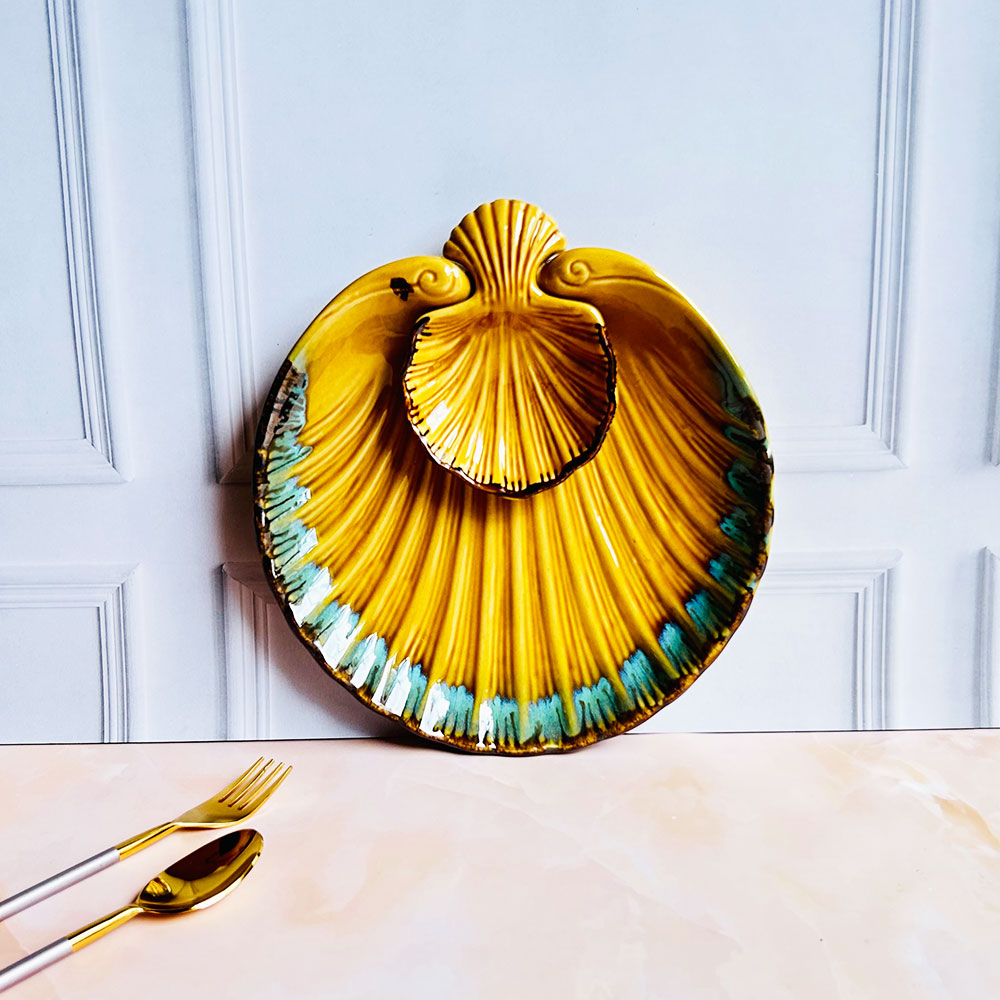Bring natural elegance to your table with the Meadow Glow Platter. Featuring a mustard green base with subtle multicolor accents, this chip and dip platter exudes charm and versatility. Its divided design ensures effortless serving, making it perfect for snacks, dips, and more.