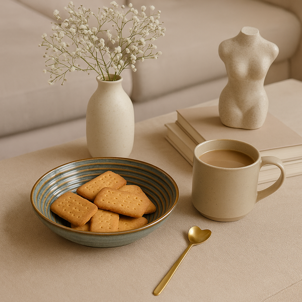 The Sage Shallow Bowl is where simplicity meets artistry. Handcrafted in ceramic, it features a soothing sage-green glaze with a delicate spiral design that draws the eye to its center. Its wide, shallow form makes it versatile—perfect for serving salads, pasta, snacks, or even as a statement décor piece on your table.