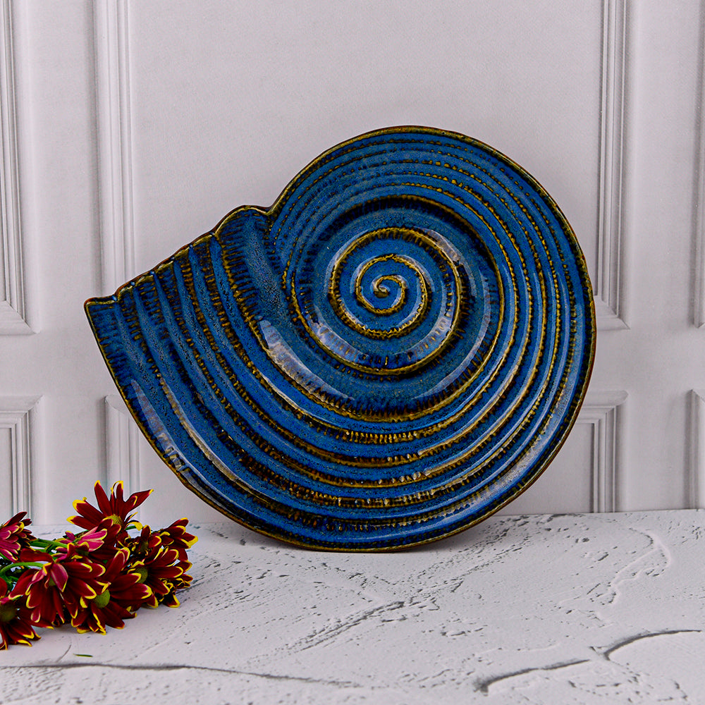 Add a striking touch to your table with our Deep Blue Spiral Platter. Crafted from high-quality ceramic, its mesmerizing spiral design and rich blue hue make it a standout piece for any occasion. Perfect for serving appetizers, snacks, or as a decorative centerpiece, this platter brings both style and elegance to your dining experience.