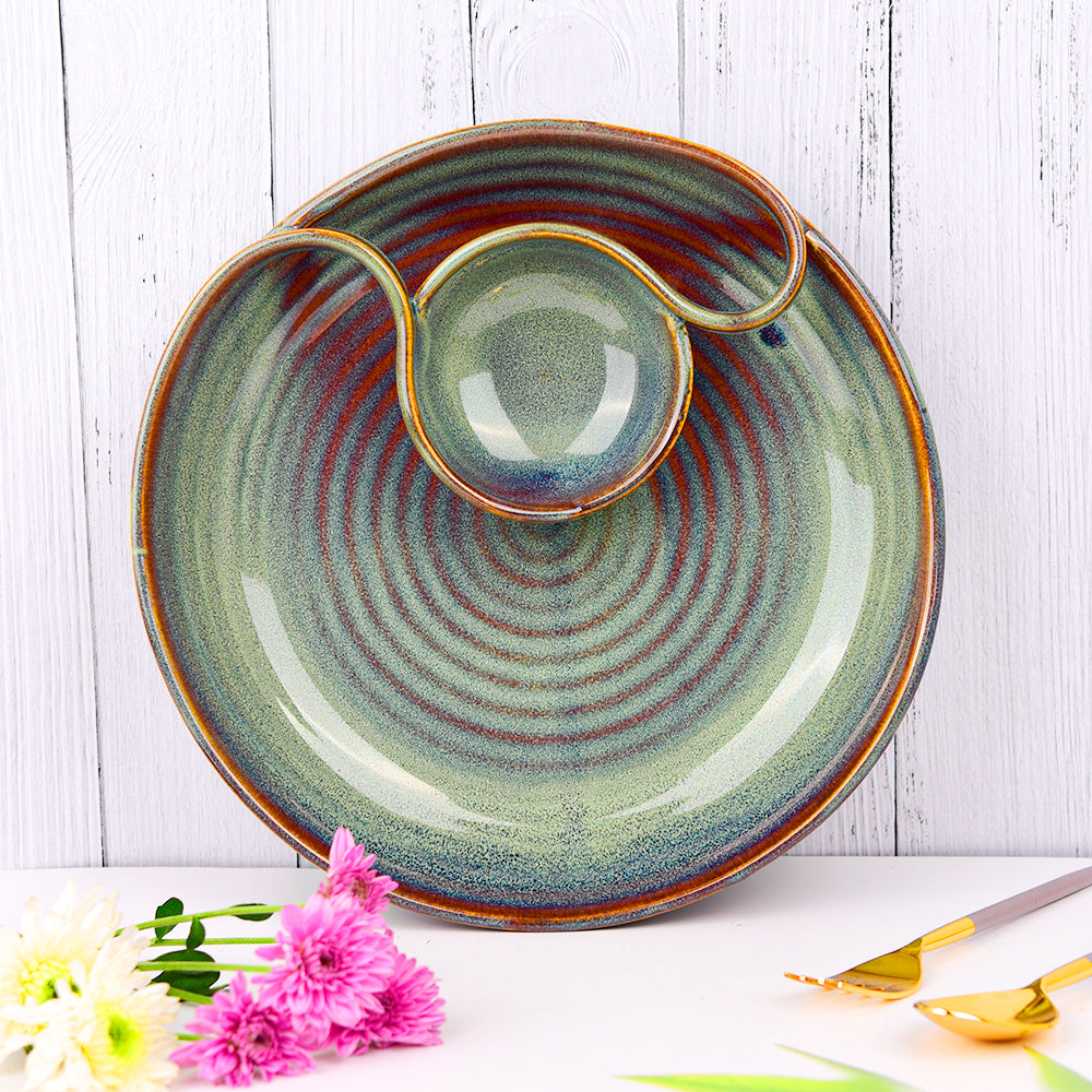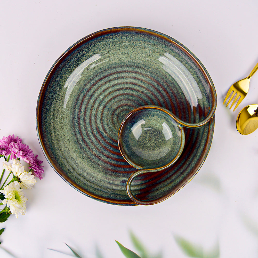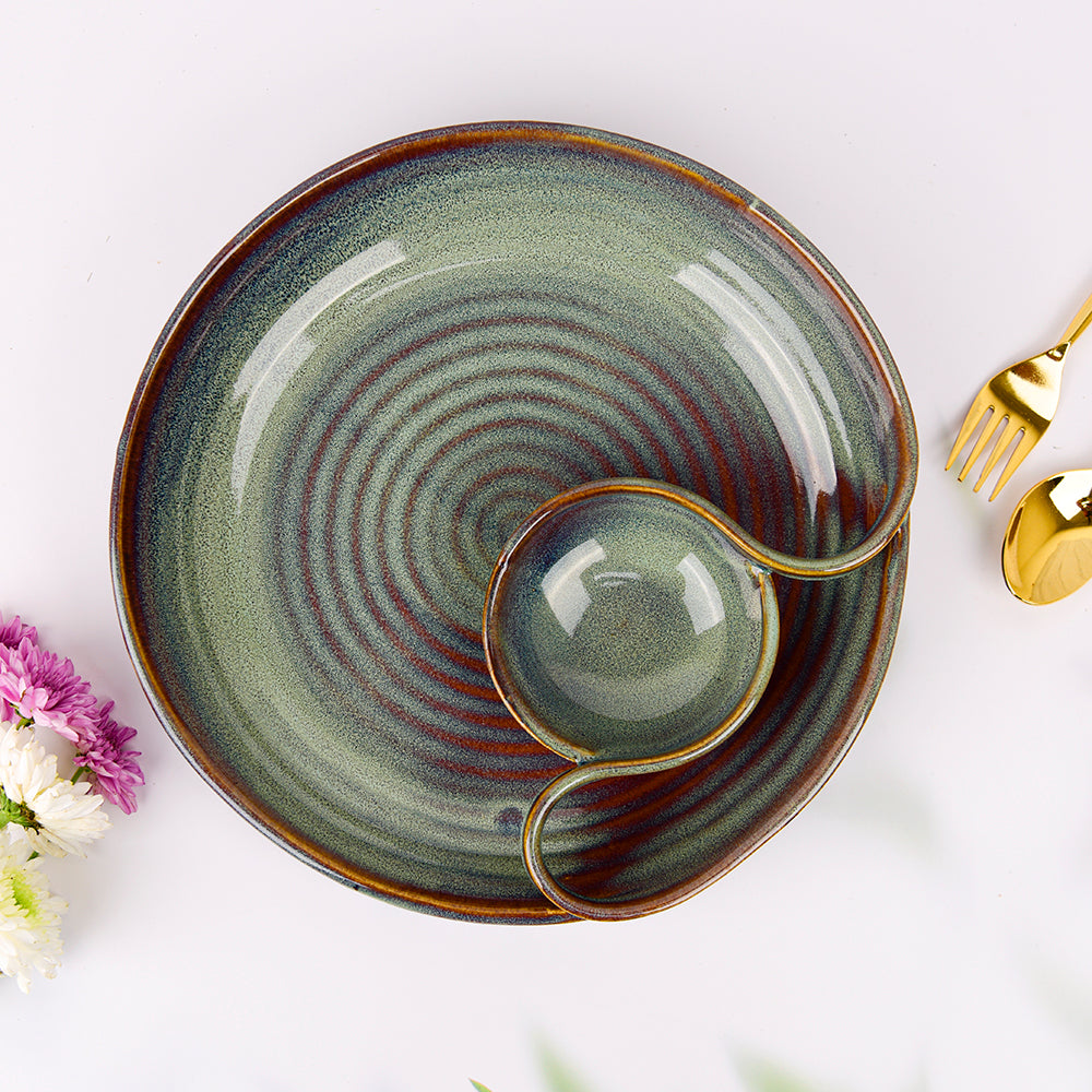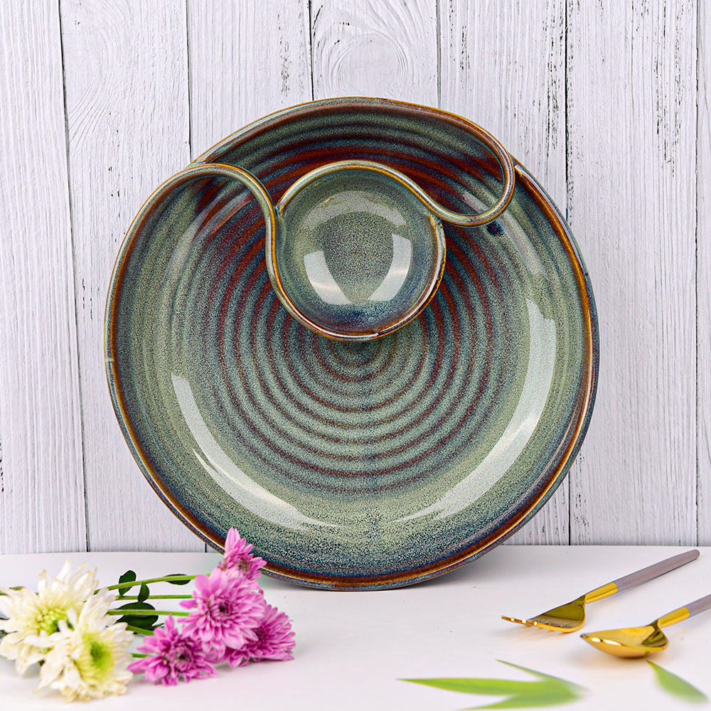 Serve in style with the Terra Luxe Chip and Dip Set, a sophisticated blend of functionality and elegance. Crafted from premium ceramic, this set features a generously sized platter for chips or snacks and a perfectly integrated bowl for dips, sauces, or condiments. The earthy tones and modern design add a touch of luxury to any table setting, making it ideal for casual gatherings and formal events alike.