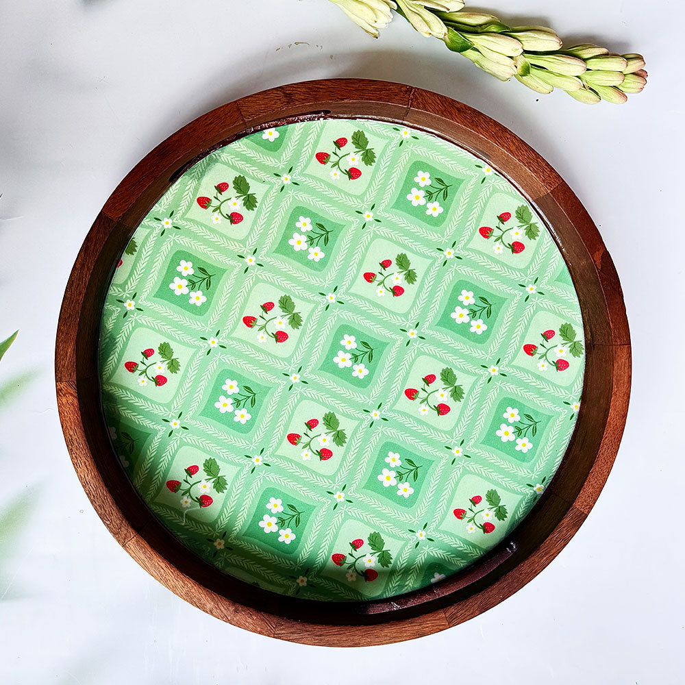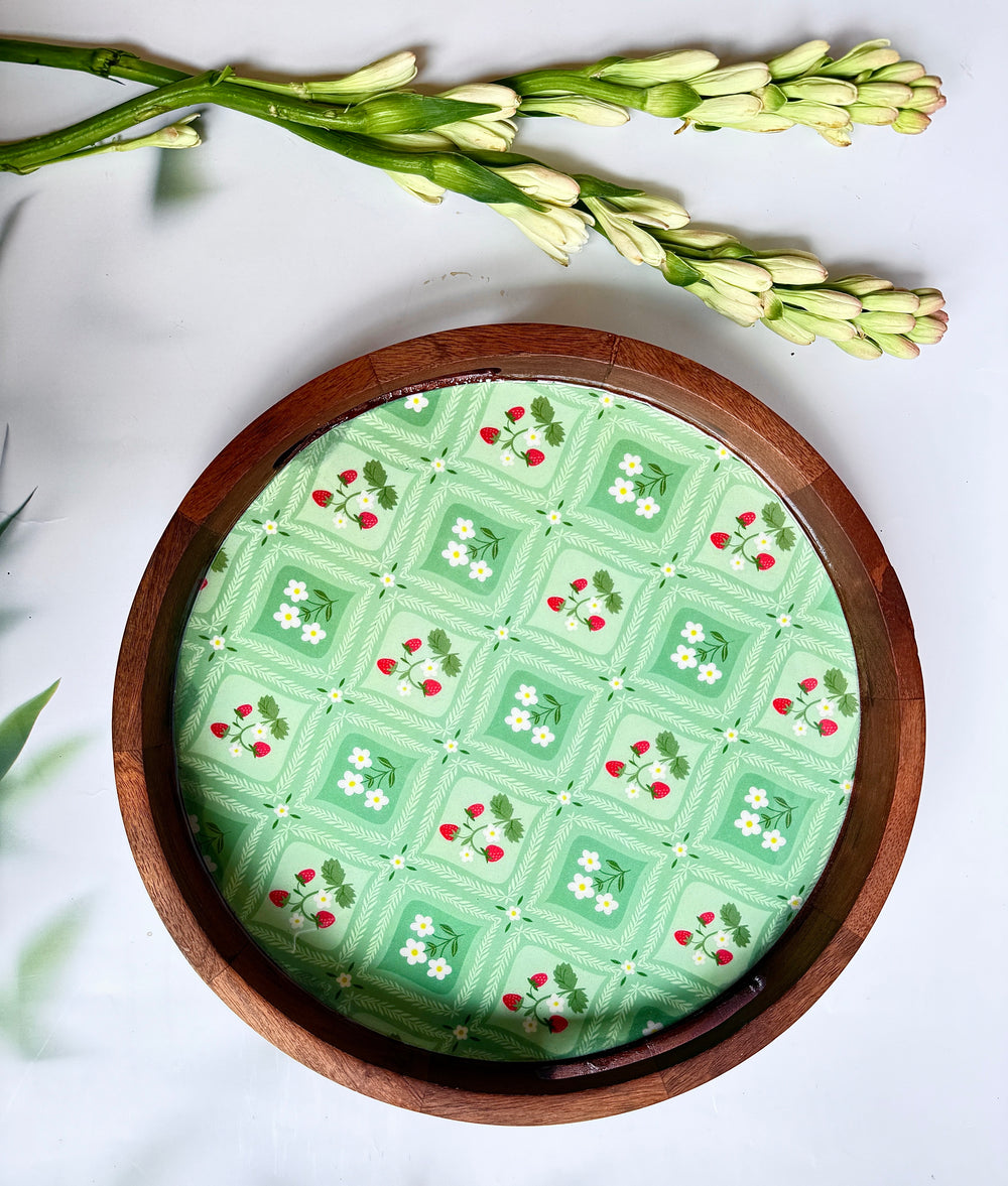 Brighten up your celebrations with the Bagh Bahaar Tray, a handcrafted piece featuring a vibrant enamel floral print. Made from durable mango wood, this round tray is perfect for festive gifting and elegant presentation.