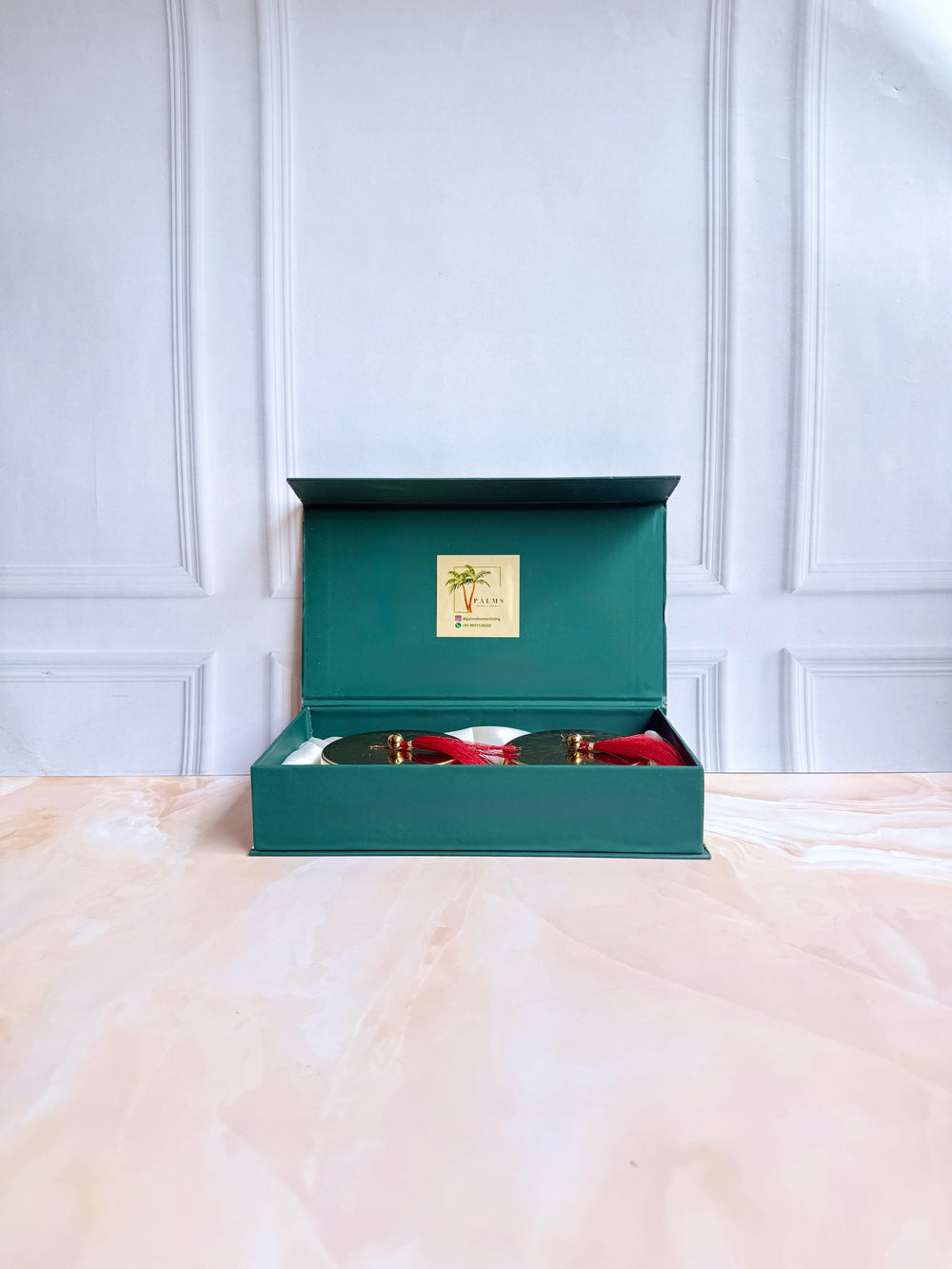 COLOR – Gold Urlis with Red Tassels and Bottle Green Box
