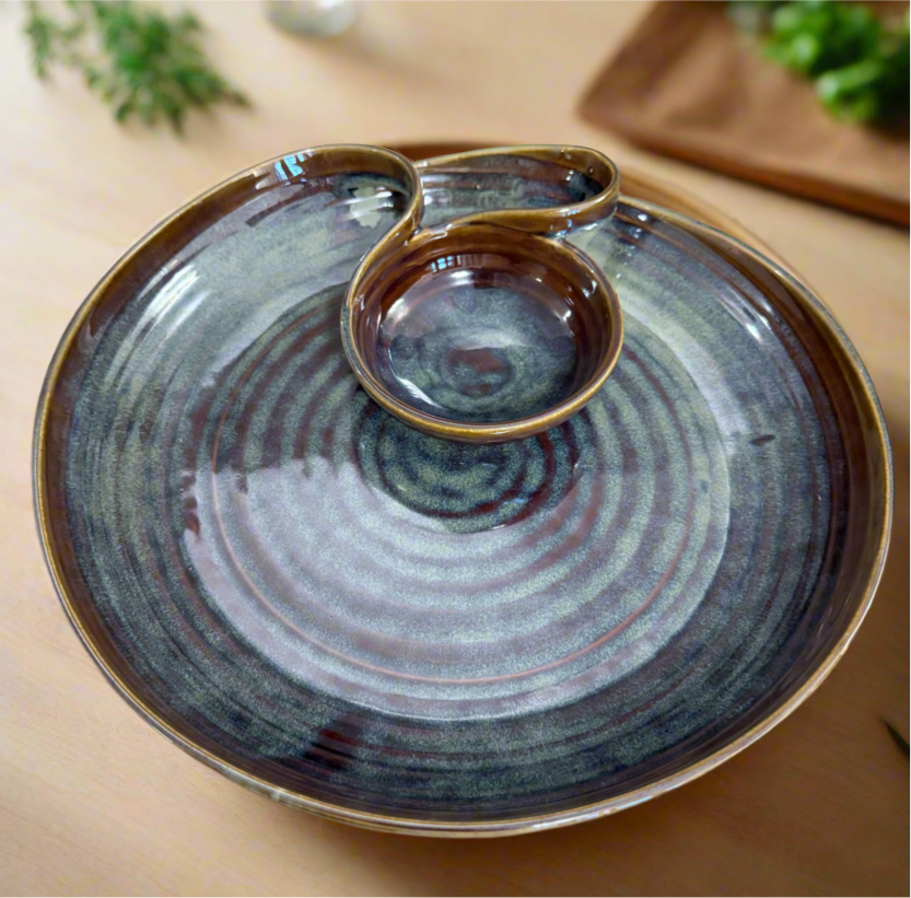 Bring elegance and functionality to your festive gatherings with our handcrafted Blue Noir Donut Platter. The wide base makes it perfect for serving snacks, dry fruits, namkeen, or festive treats, while the central well can be used for dips or chutneys.