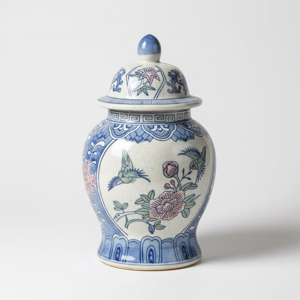Grace takes flight in this Urn — a stunning expression of traditional blue pottery adorned with delicately hand-painted bird and floral motifs. Symbolising freedom, harmony, and hope, the artwork flows beautifully across the curved silhouette in rich blue hues.