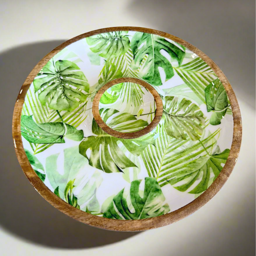 An exclusive design by Palms, this chip n dip platter is where luxury meets function. Featuring a never-seen-before tropical print, it brings a vibrant yet sophisticated touch to your table.