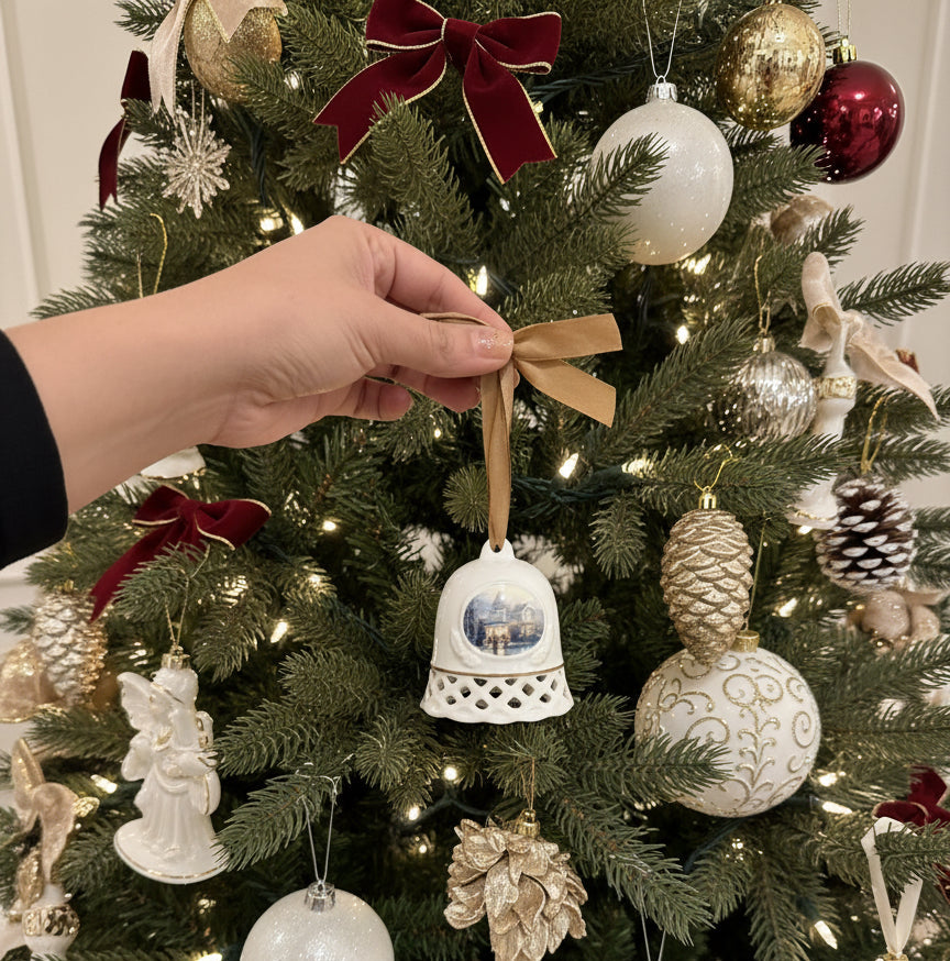 Made from premium ceramic with a smooth, glossy finish, this bell features delicate detailing and a pristine white tone that complements any Christmas tree theme—be it minimal, luxe, or traditional.