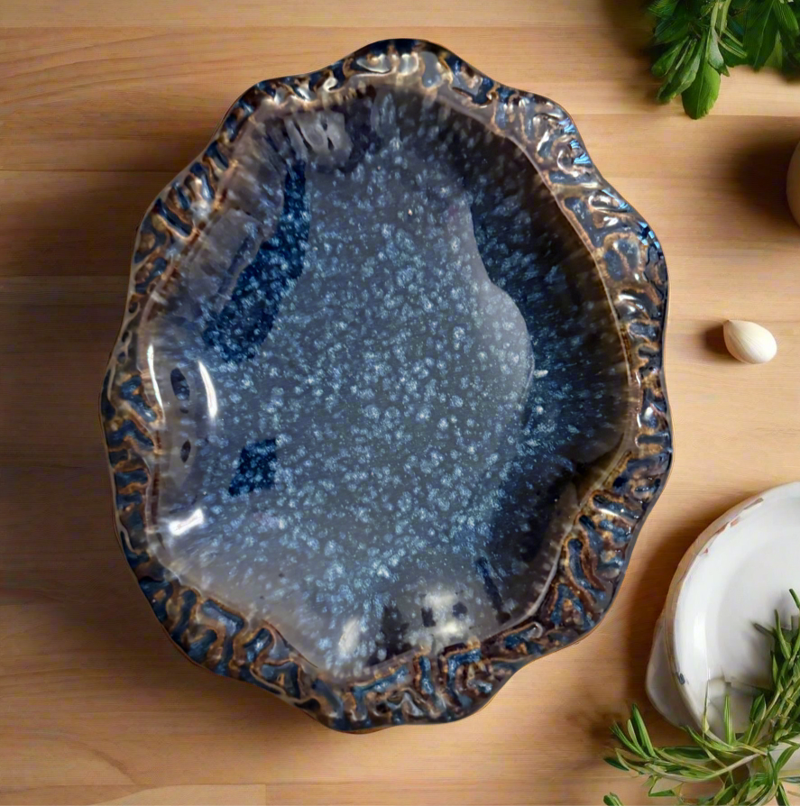 Elevate your table setting with the Star Gaze Platter, a striking centerpiece that blends elegance with functionality. Crafted with a unique textured finish and a celestial-inspired design, this platter makes an instant statement whether used for serving or display.